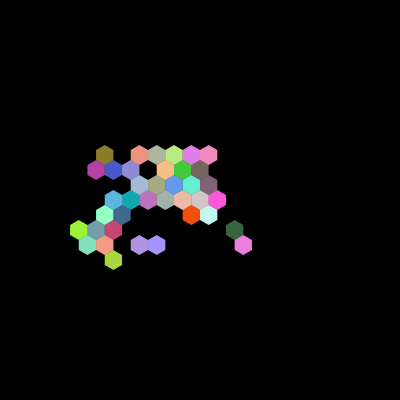 An artwork created for IDEA9103: Design Programming. Hexagon Walker grows bring pastel tendrils from the centre of the screen only to be cut back.